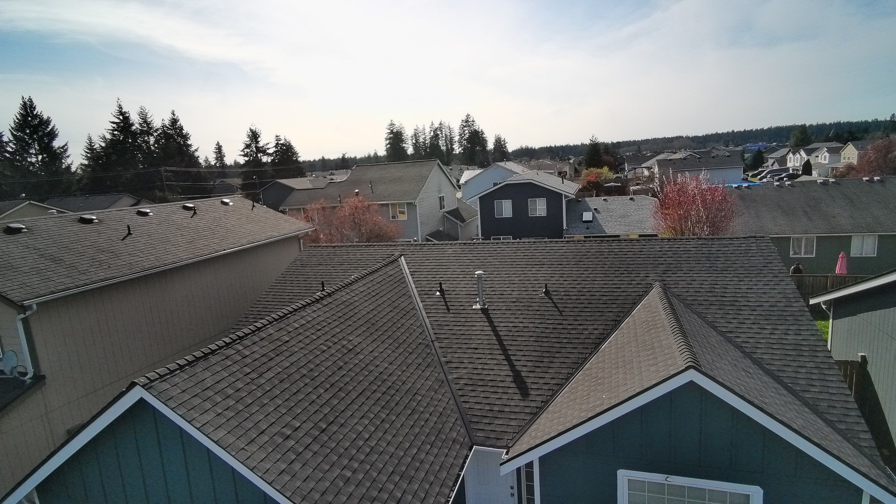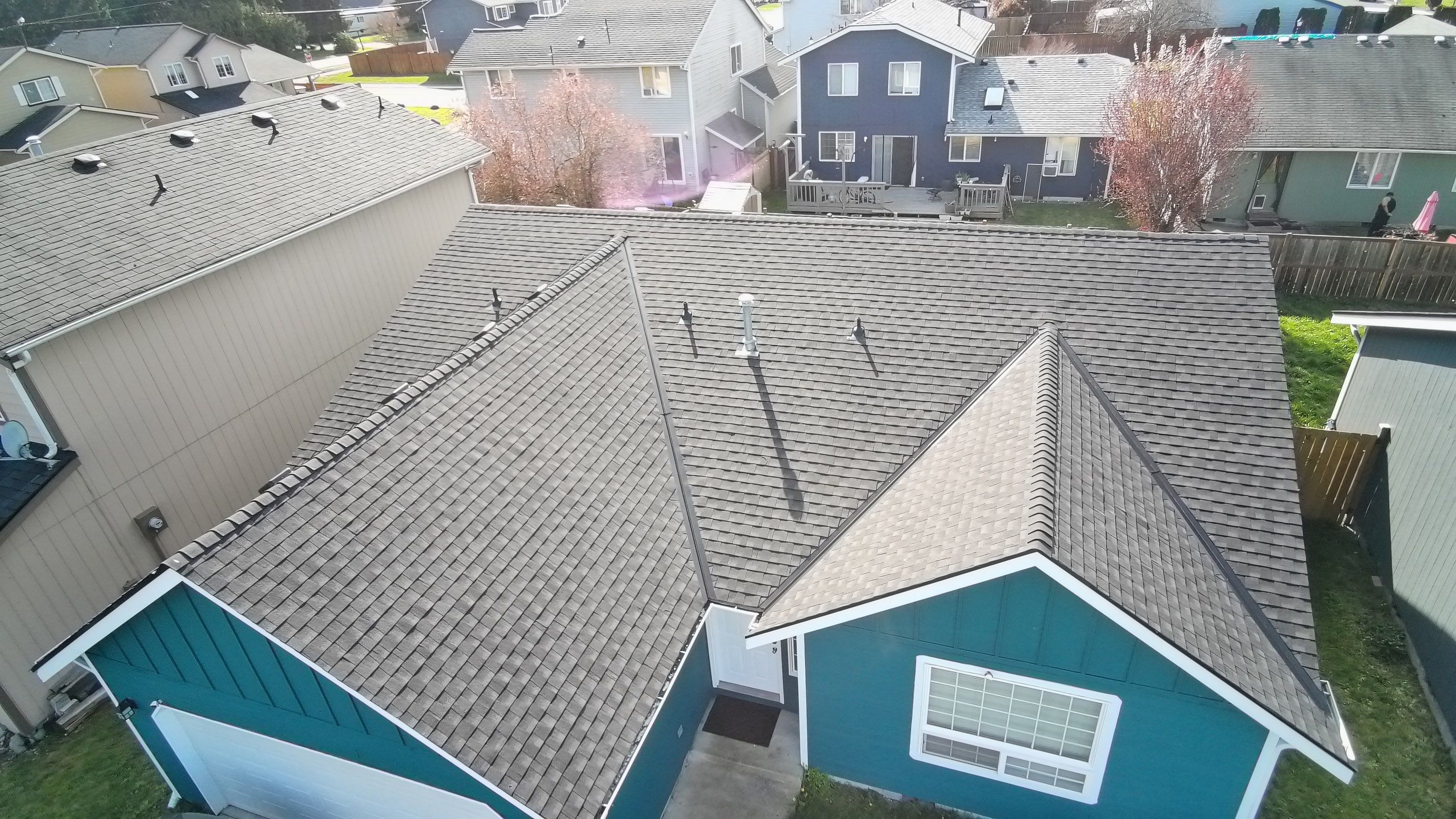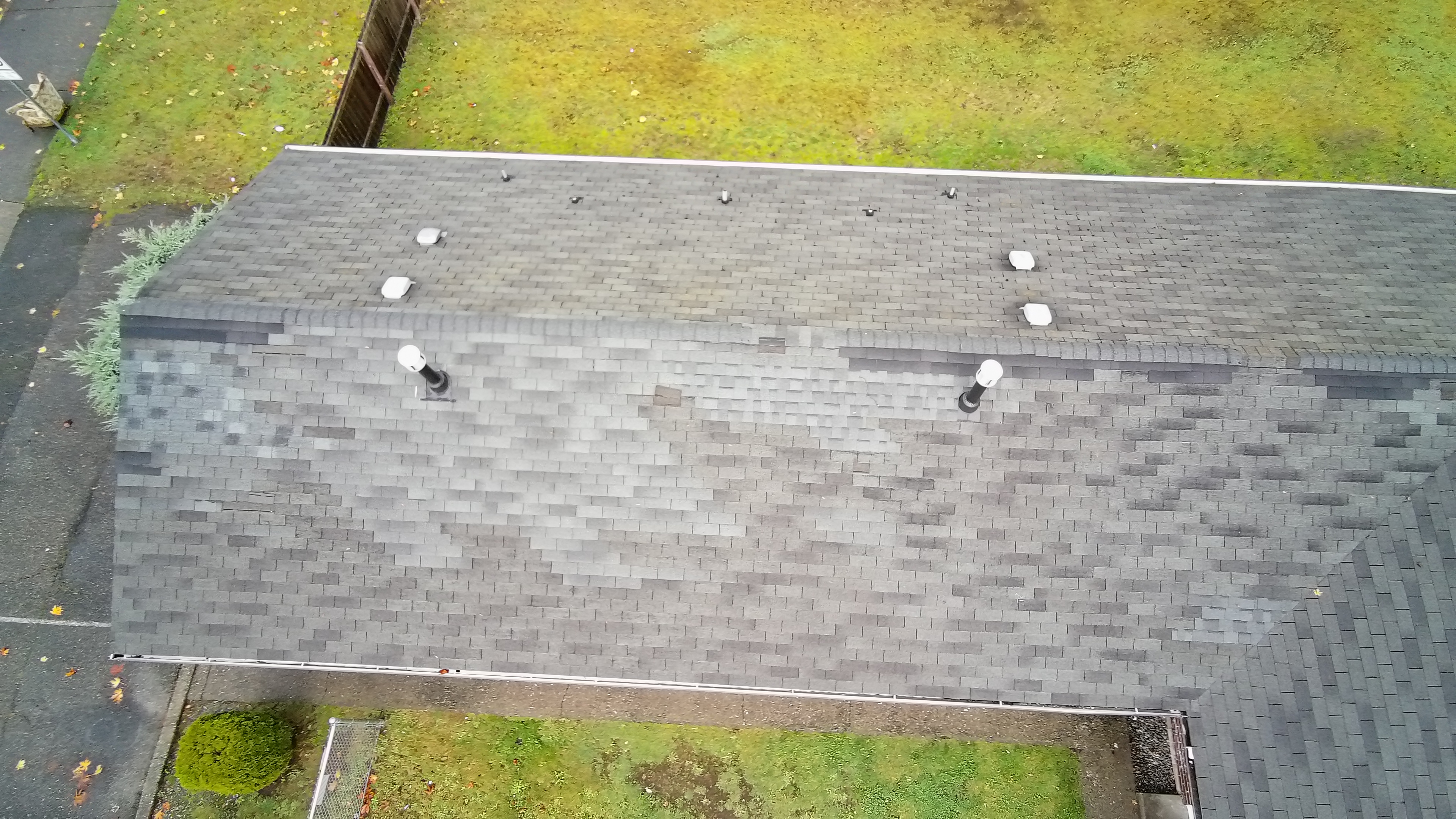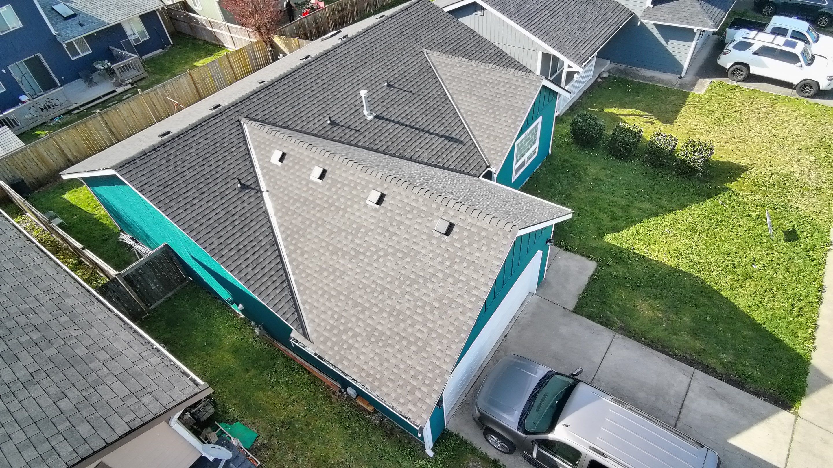 A second residential roofing project in the Pierce County area — complete documentation of damage conditions and the finished restoration performed by Delta Restoration Services.