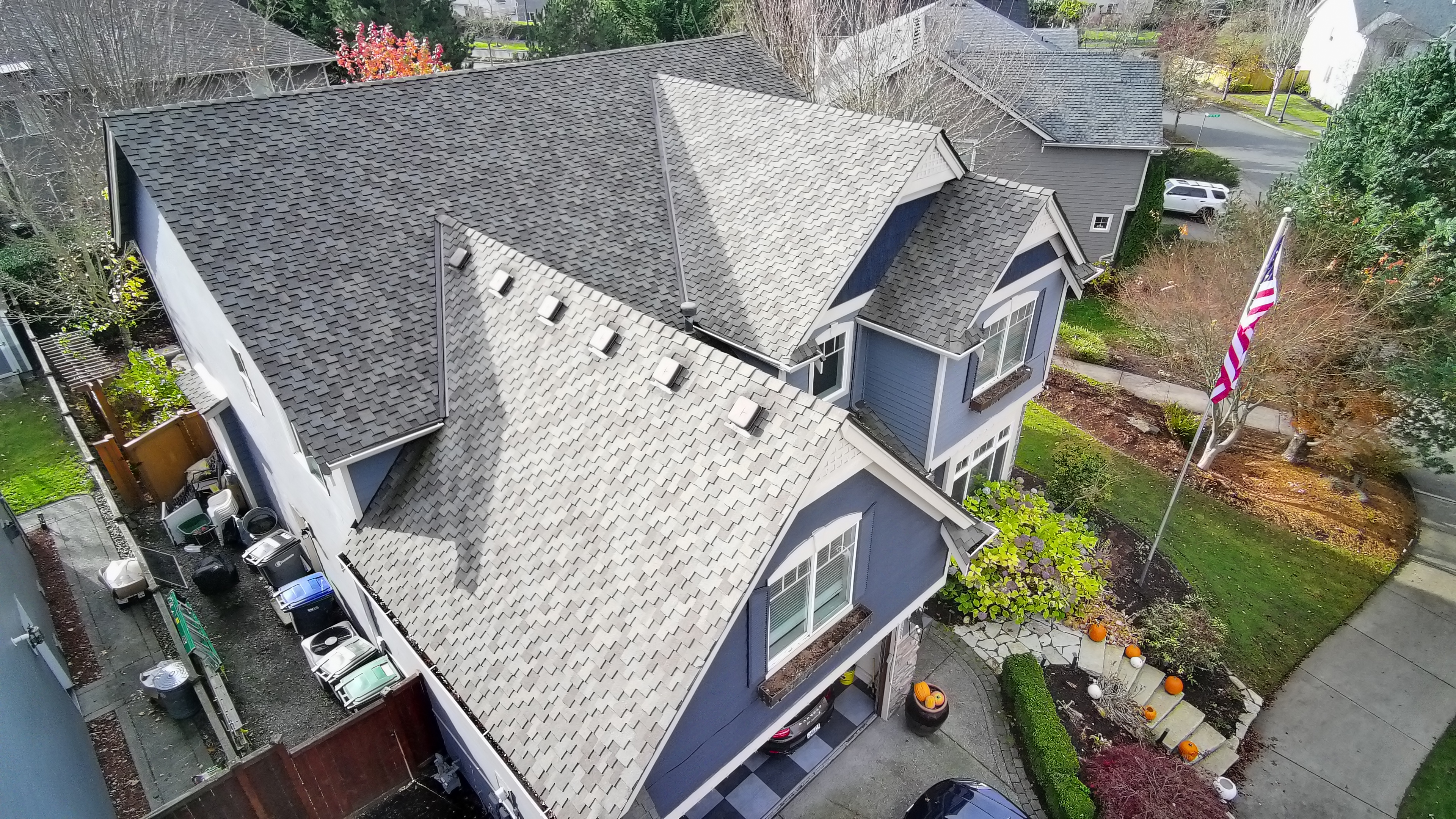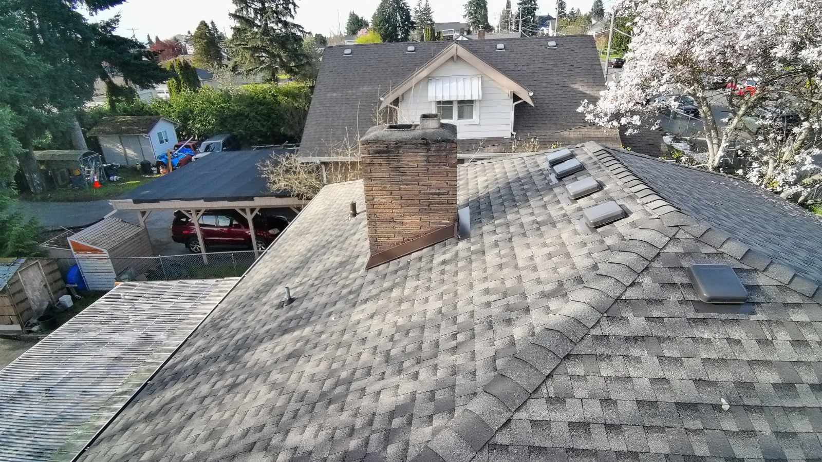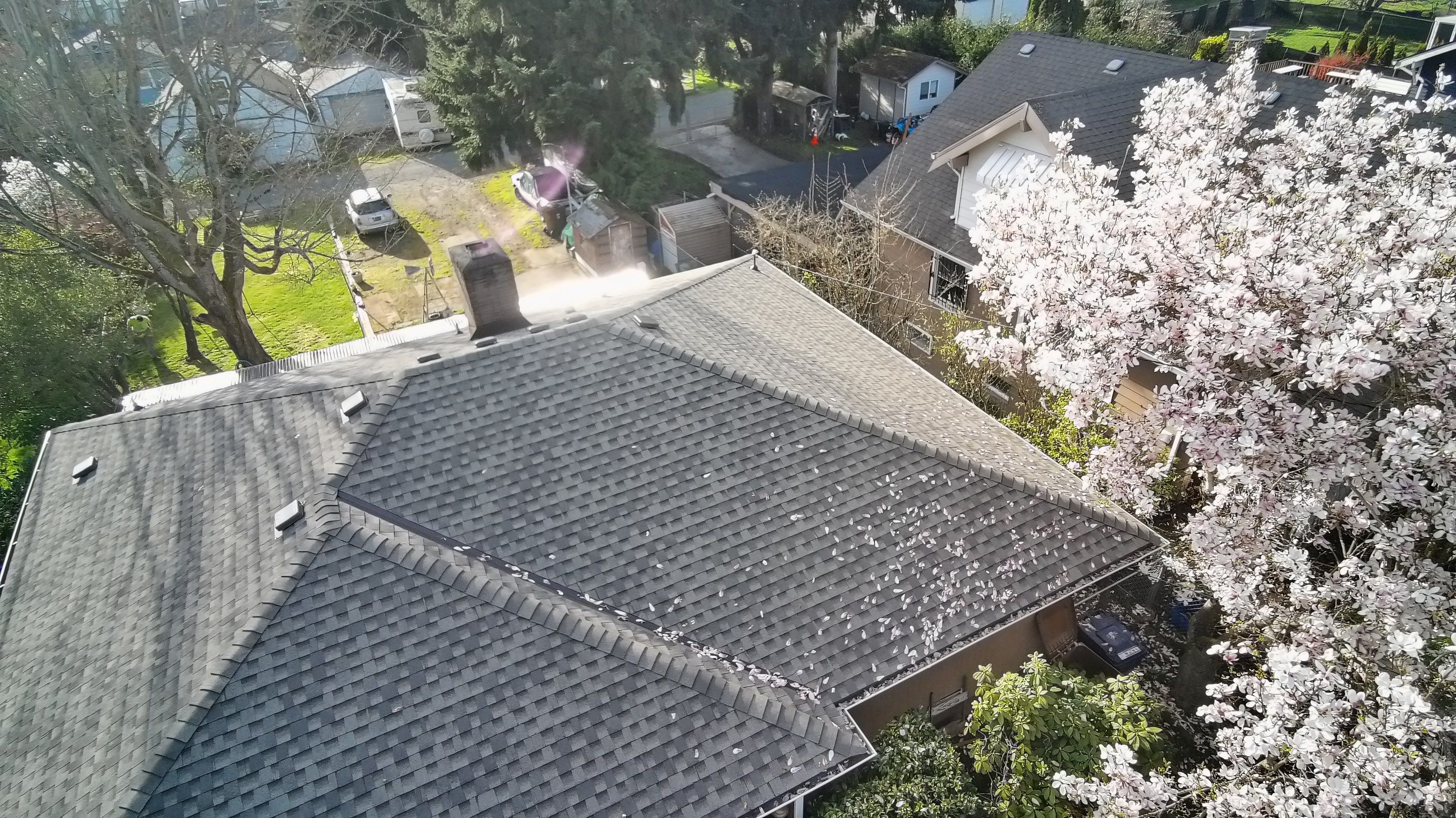 A second residential roofing project in the Pierce County area — complete documentation of damage conditions and the finished restoration performed by Delta Restoration Services.