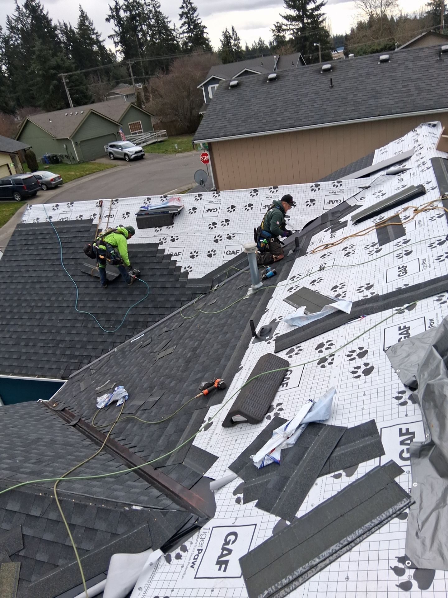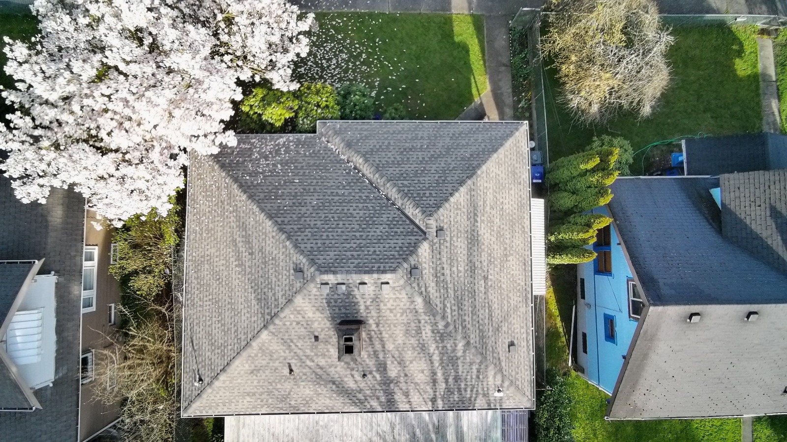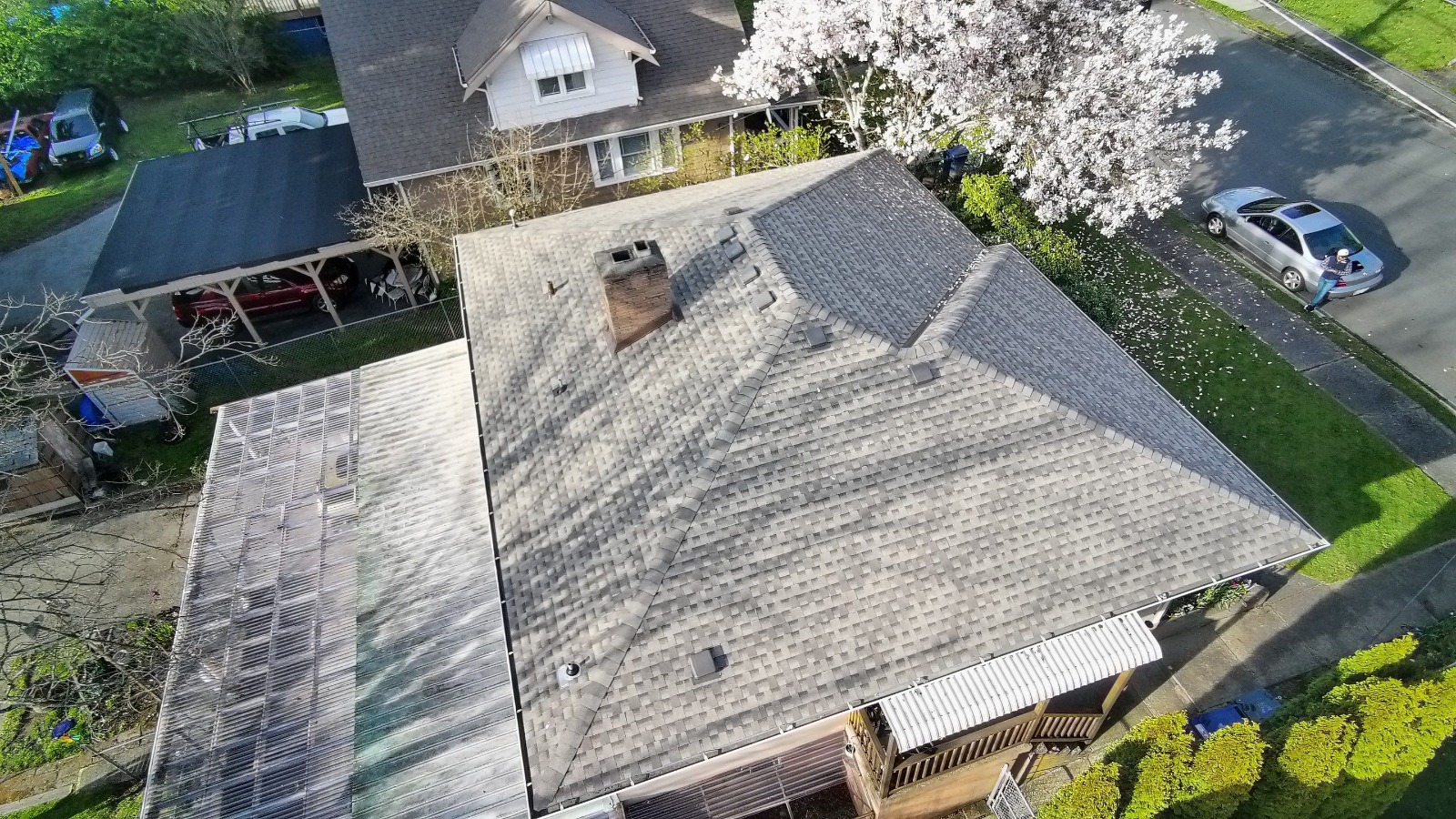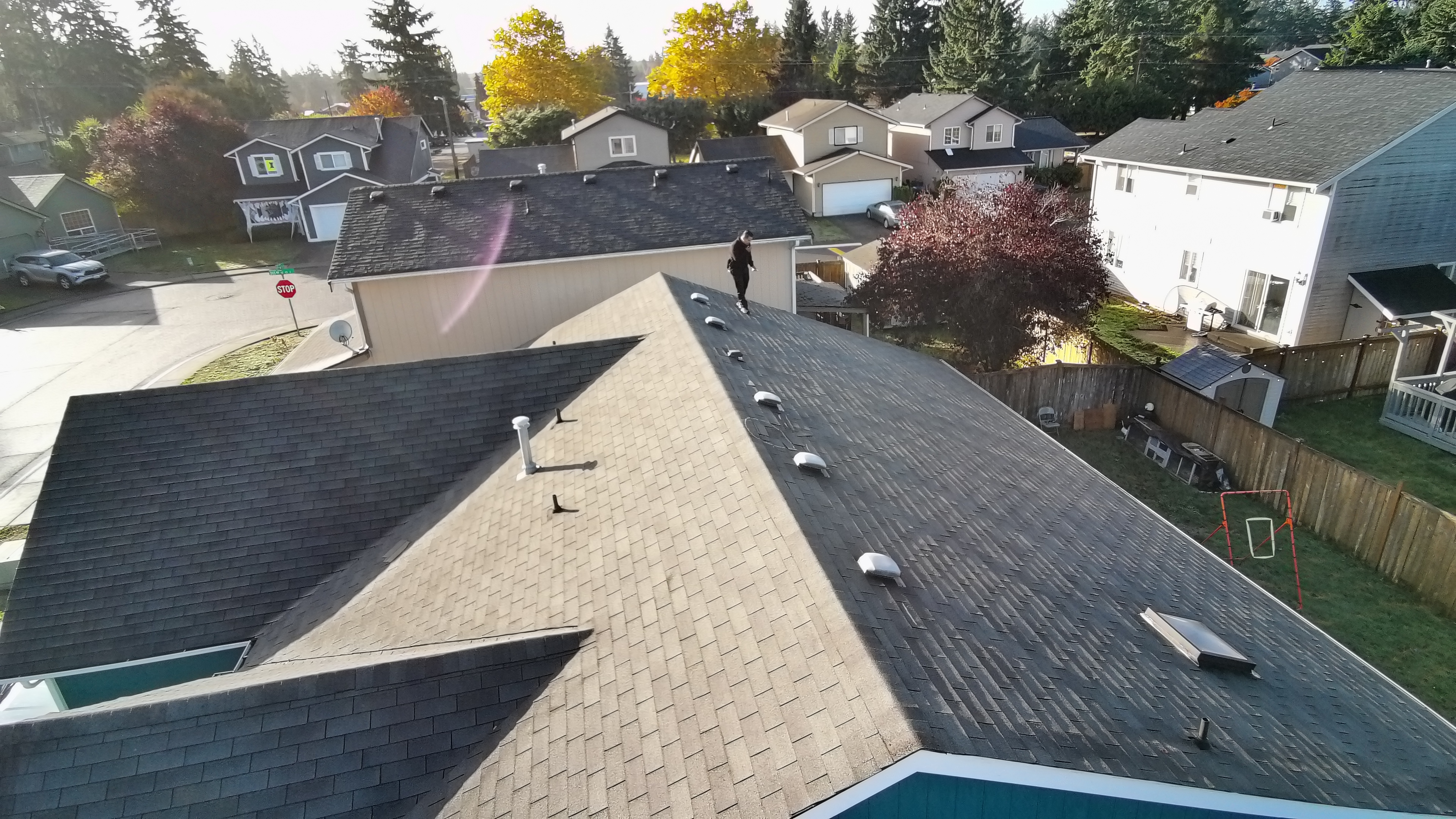 A second residential roofing project in the Pierce County area — complete documentation of damage conditions and the finished restoration performed by Delta Restoration Services.