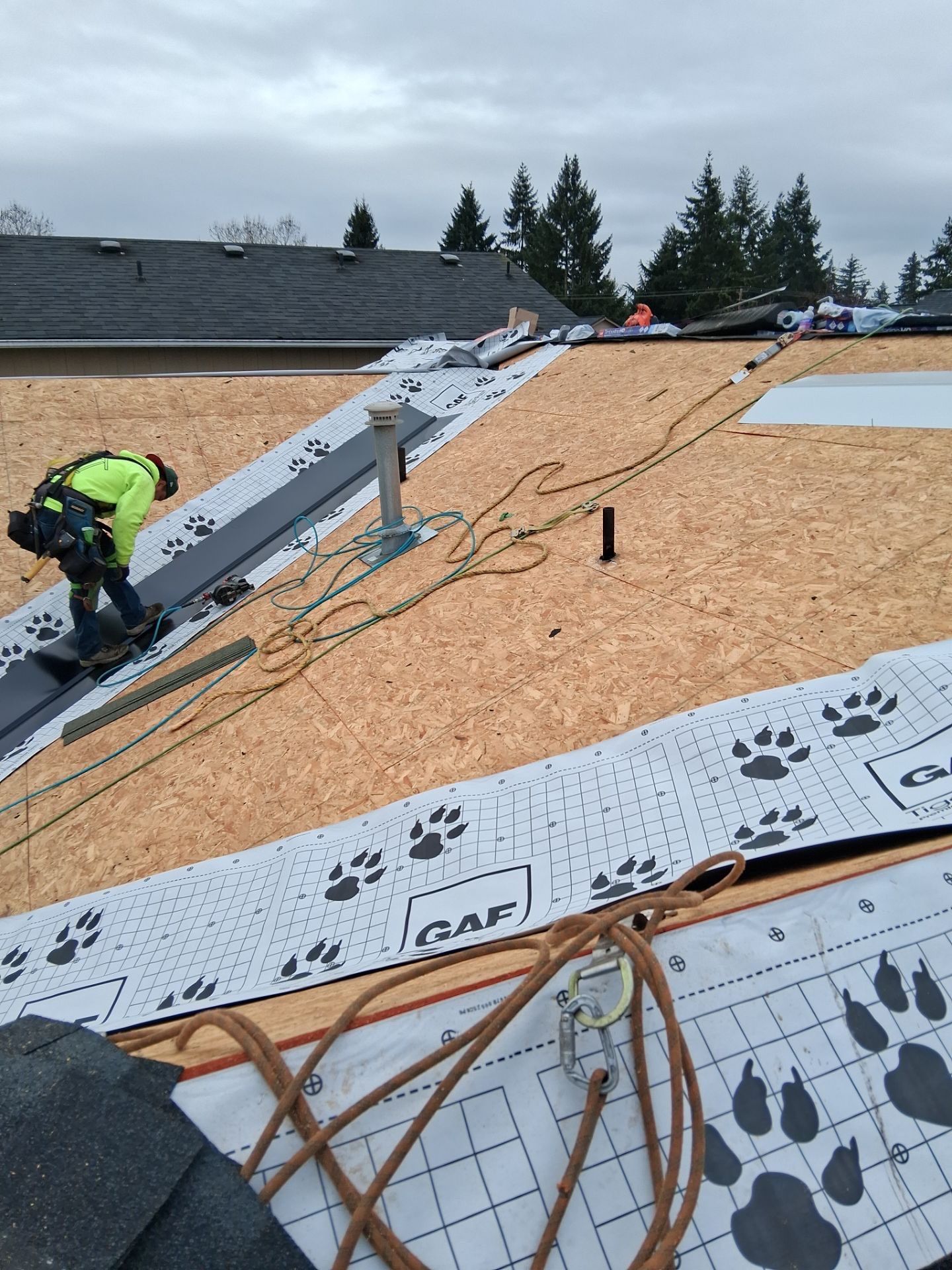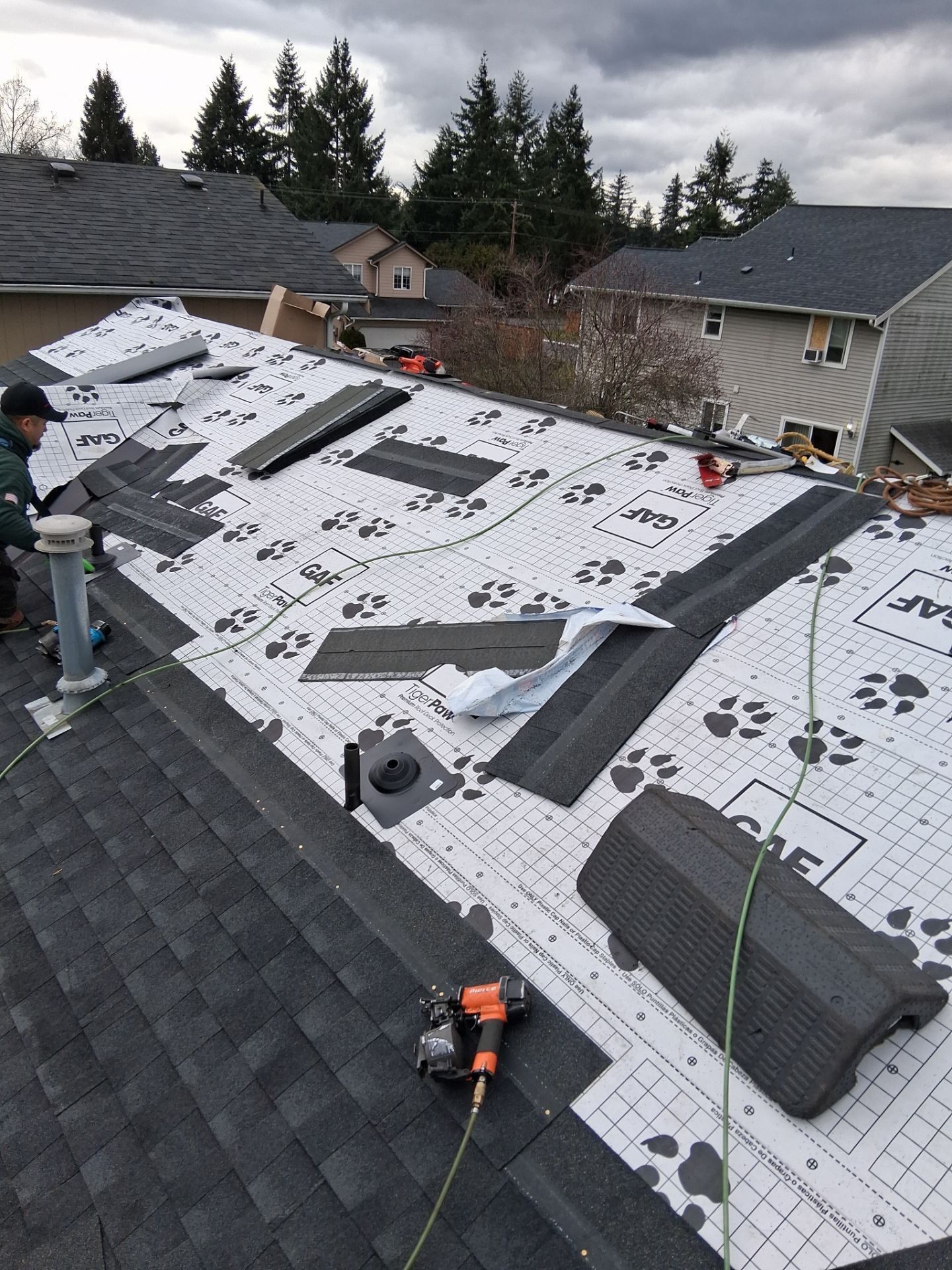 Full storm damage assessment and complete roof replacement performed by Delta Restoration Services. All damage was documented for the insurance claim process — from initial inspection through final installation.